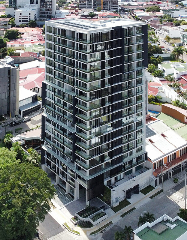 Description: Vertical residential condominum. 18 levels and 1 basement, 144 apartaments. Tower parking system for 48 cars.